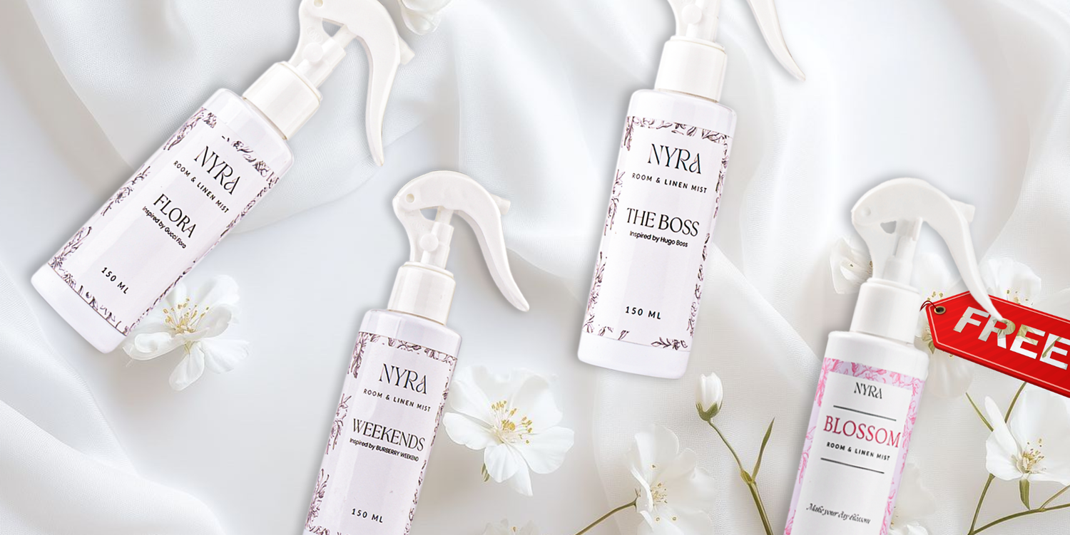 Let calm settle into every corner with Nyra’s Room & Linen Mist. Each spray is a whisper of freshness that transforms your space into a soothing retreat. Hand-blended with fine imported oils, our mists bring elegance and tranquility to your daily routine. Refresh your home, your fabrics, and your mood the Nyra way.