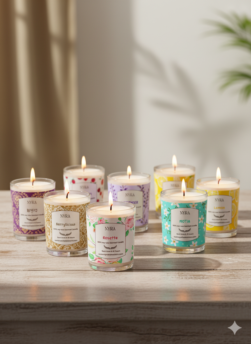 At Nyra Home Store, every product is made with care, using premium materials and long-lasting scents. From our hand-poured candles to our diffusers and sprays, we focus on quality, fragrance, and comfort for your home.