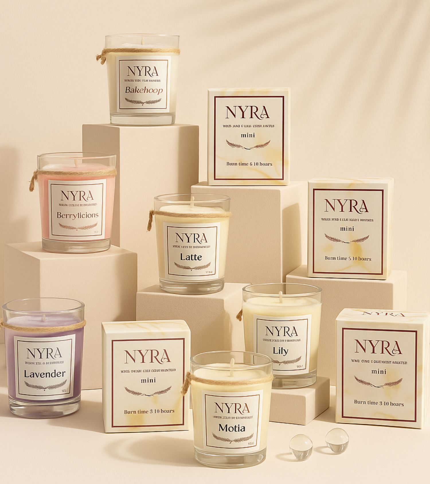NYRA was founded by two sisters with one shared dream to create organic, handcrafted scented candles in Karachi that inspire calm and sustainability. Their mission is to build an eco-friendly lifestyle through scents that refresh your home and relax your soul. Unlike regular paraffin candles that release toxins, Nyra’s candles are made using pure soy wax and beeswax, ensuring a clean burn that’s safe for your health and gentle on the planet. Each candle reflects their love for nature, craftsmanship, and wellness turning every space into a peaceful retreat. What began as a small idea between two sisters has now become a symbol of luxury, purity, and care. With Nyra, you’re not just lighting a candle you’re choosing a more mindful, organic way to live.